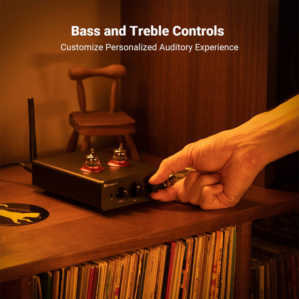 Versatile Connectivities: The P3 provides Bluetooth/RCA inputs and RCA/AUX OUT/3.5mm headphone outputs. It can help create a 2.1-channel audio system by connecting active speakers/an amplifier and a subwoofer. As a headphone amplifier, it supports headphones with impedance ranging from 16Ω to 300Ω.
