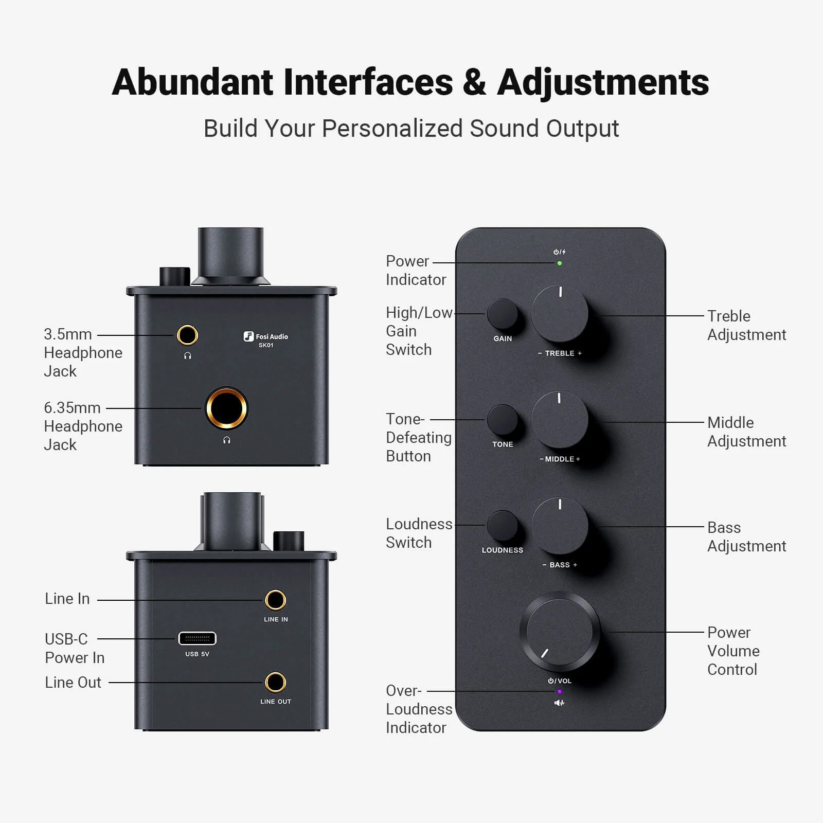 Tailor-Made Audio Experience: The SK01 is a multi-functional audio gear that caters to desktop and portable music playing and tone tuning. The tri-band adjustment allows you to personalize treble, middle, and bass, finding the perfect balance for your preferences.