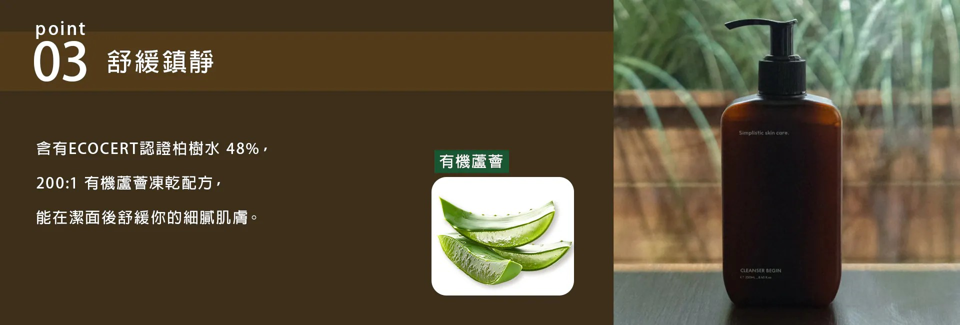 ➄ 200:1 冷凍乾燥有機蘆薈葉汁粉末:在清潔過程中有效降低刺激感。