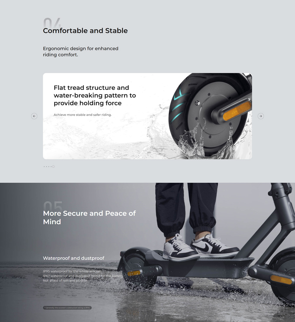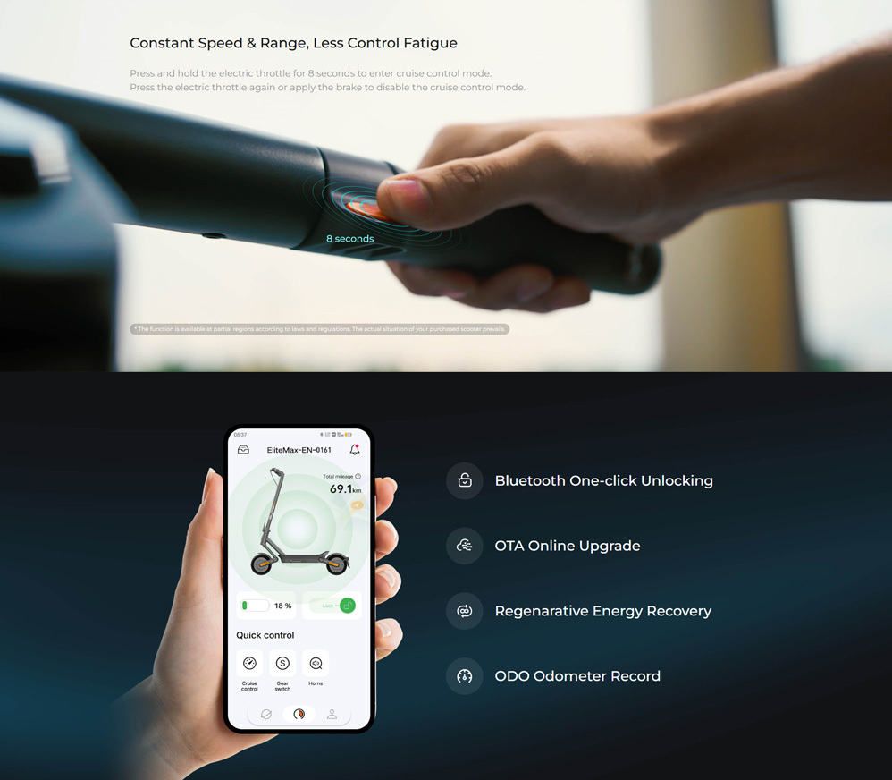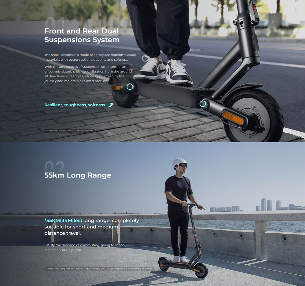 * The range of scooter is the lab test data. For the specific road acceleration test data, please refer to the actual vehicle performance.