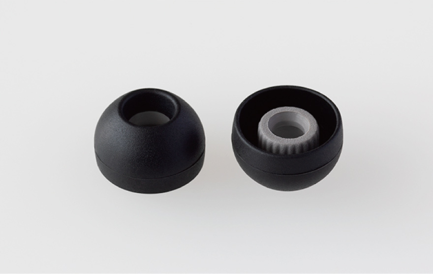 一般的耳膠,往往在耳導深處受到擠壓变形,在耳内呈現受壓迫的形狀,長時間佩戴時便成為疼痛疲累的原因。新的「TYPE E 真藍牙耳機專用設計」耳膠,屬於較柔軟易佩戴的類型,幾乎沒有異物感。以最低負荷的佩戴方式實現"最舒適的佩戴感"