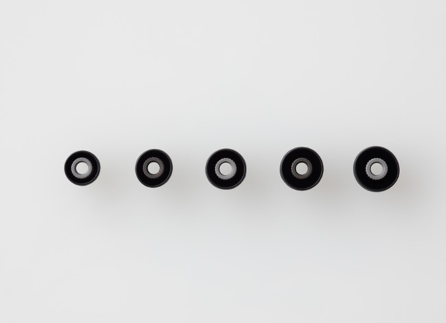 包括 5 種尺寸的耳機“TYPE E 真無線規格”耳膠,因其出色的貼合度和隔音效果而廣受歡迎。許多常見耳機的形狀會對耳道後部產生強大的壓力,長時間佩戴會導致疼痛和疲勞。 TYPE E真無線專屬型號是輕柔放置在耳道入口處的類型,因此幾乎沒有異物感。透過最大限度地減少佩戴本身的感覺,我們實現了「至高無上的最佳佩戴感覺」。此外,相鄰尺寸的中軸的顏色不同(淺灰色和深灰色交替),更容易區分尺寸。