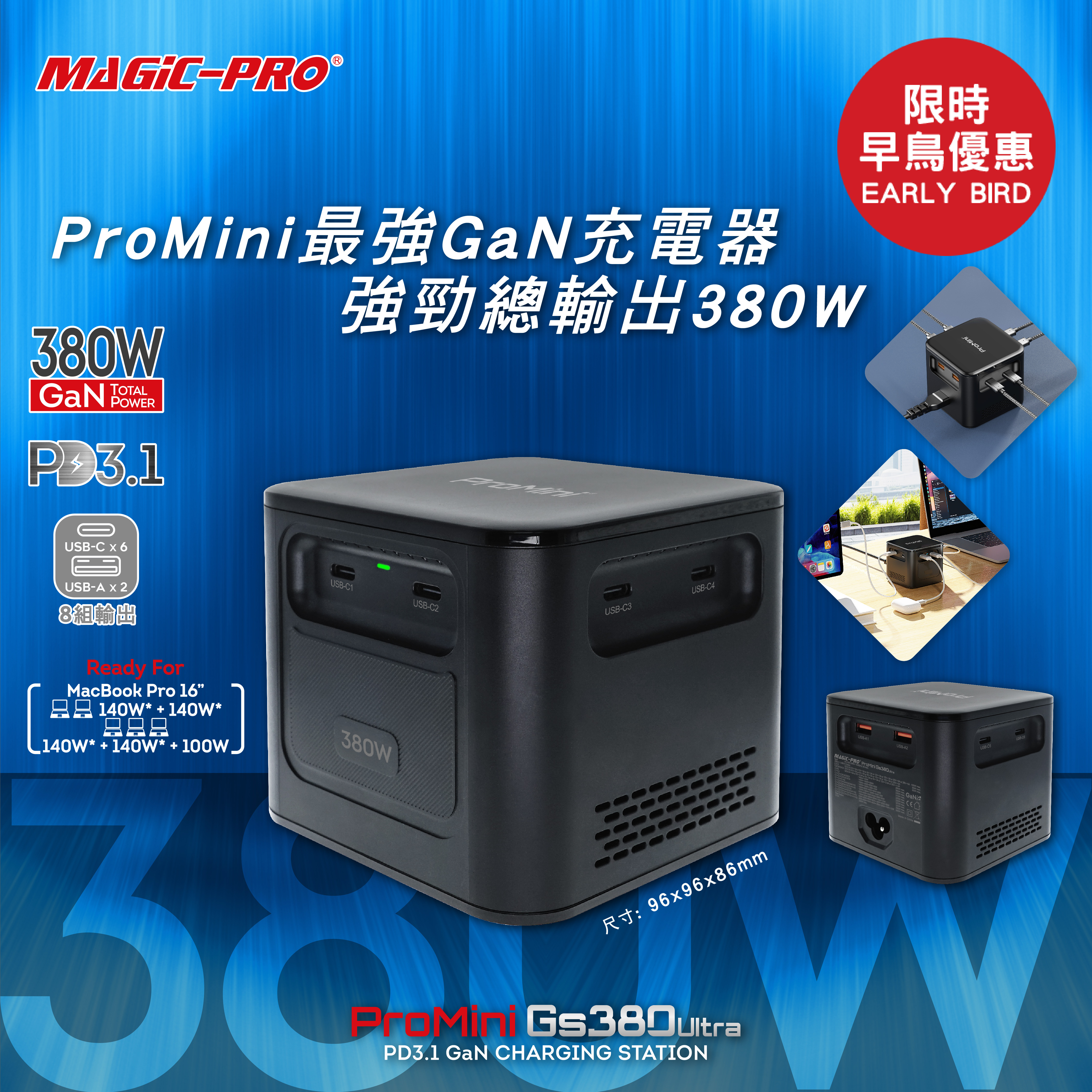 - 為3台 MacBook Pro / 筆記本電腦充電提供全速PD140W+PD140W+PD100W (Max.)快速充電