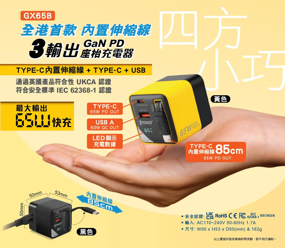 XPower GX65B 3合1超迷你65W GaN PD座枱充電器