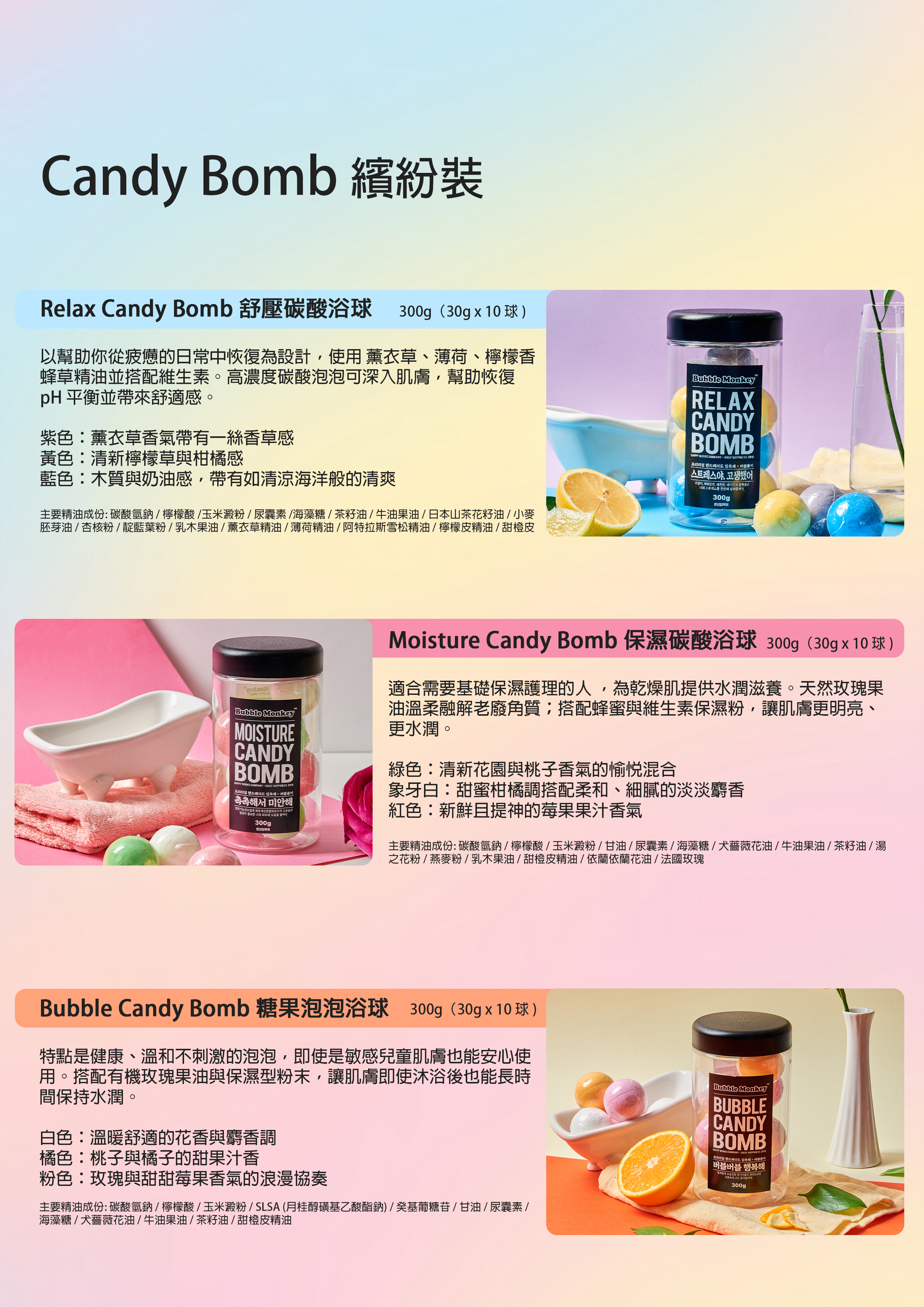 系列涵蓋 Relax舒緩、Moisture保濕、Bubble泡泡等主題,滿足不同年齡層與心情需求,讓使用者隨時找到專屬的療癒配方。